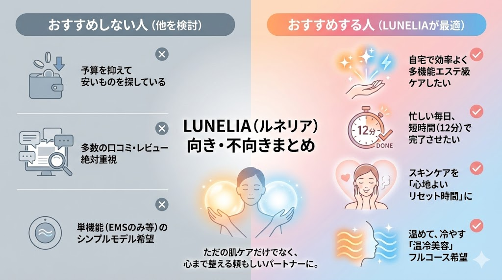 8. 【まとめ】LUNELIA(ルネリア)をおすすめしない人・おすすめする人