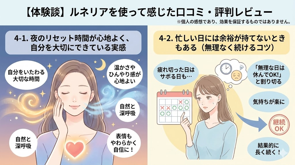 4-1. 夜のリセット時間が心地よく、自分を大切にできている実感